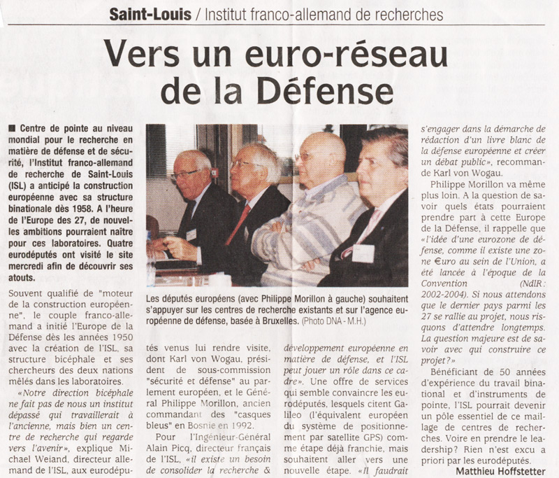 Karl von Wogau besucht mit Kollegen Deutsch-Französisches Forschungsinstitut Saint-Luis